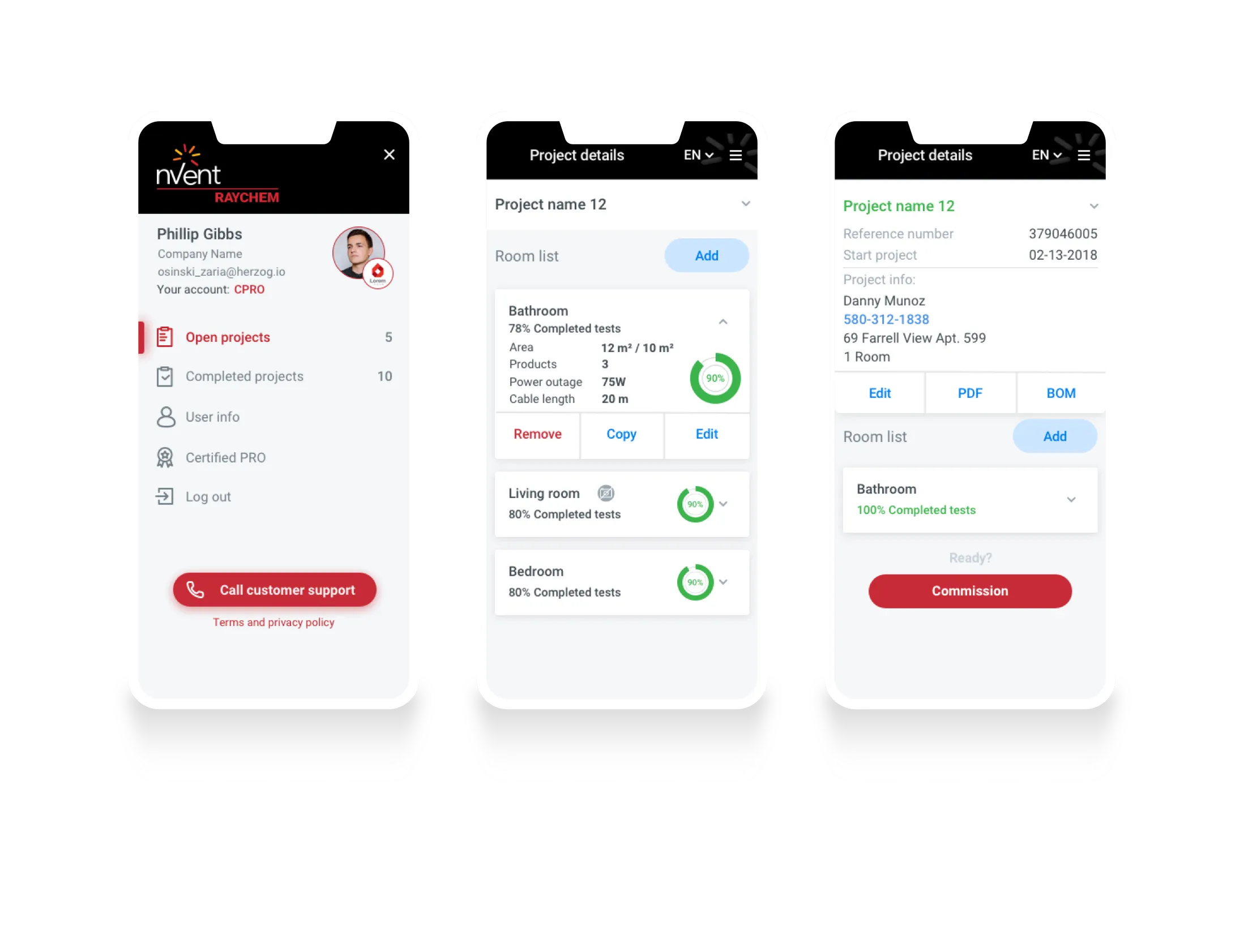 The main challenge of the project was to create easy to use, mobile-oriented web app for floor heating installers, especially those who work on nVent Thermal products. nVent Thermal needed a clear and very intuitive UX / UI as the app was meant to be available on multiple markets. One of the key planned functionalities of the product was a feature enabling to create a virtual plan of the room where the technology will be installed. In the next step, based on the already inserted data, the app creates a complete list of all parts needed for completing the installation. Additionally, the app was going to enable Certified Pro program members to register all used parts and issue a 25-year warranty for the whole system.